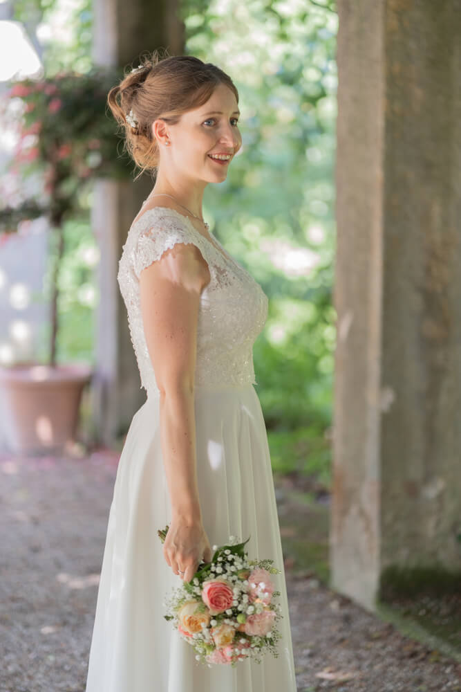 Diese standesamtliche Hochzeit in Freising begann mit einem Brautpaarshooting in einer Gartenanlage, noch bevor die eigentliche Trauung stattfand. Dieser Moment vor dem offiziellen Teil ist oft besonders intensiv: die Vorfreude, ein wenig Aufregung und das bewusste Innehalten zu zweit.