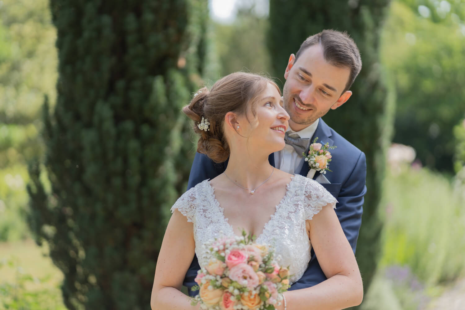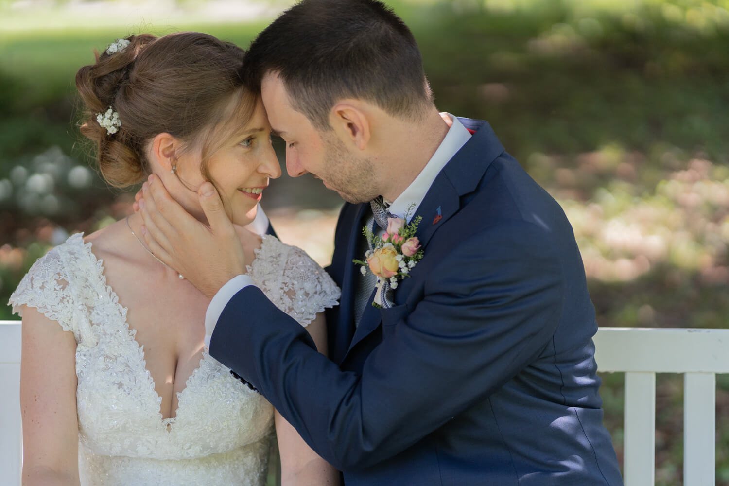 Diese standesamtliche Hochzeit in Freising begann mit einem Brautpaarshooting in einer Gartenanlage, noch bevor die eigentliche Trauung stattfand. Dieser Moment vor dem offiziellen Teil ist oft besonders intensiv: die Vorfreude, ein wenig Aufregung und das bewusste Innehalten zu zweit.